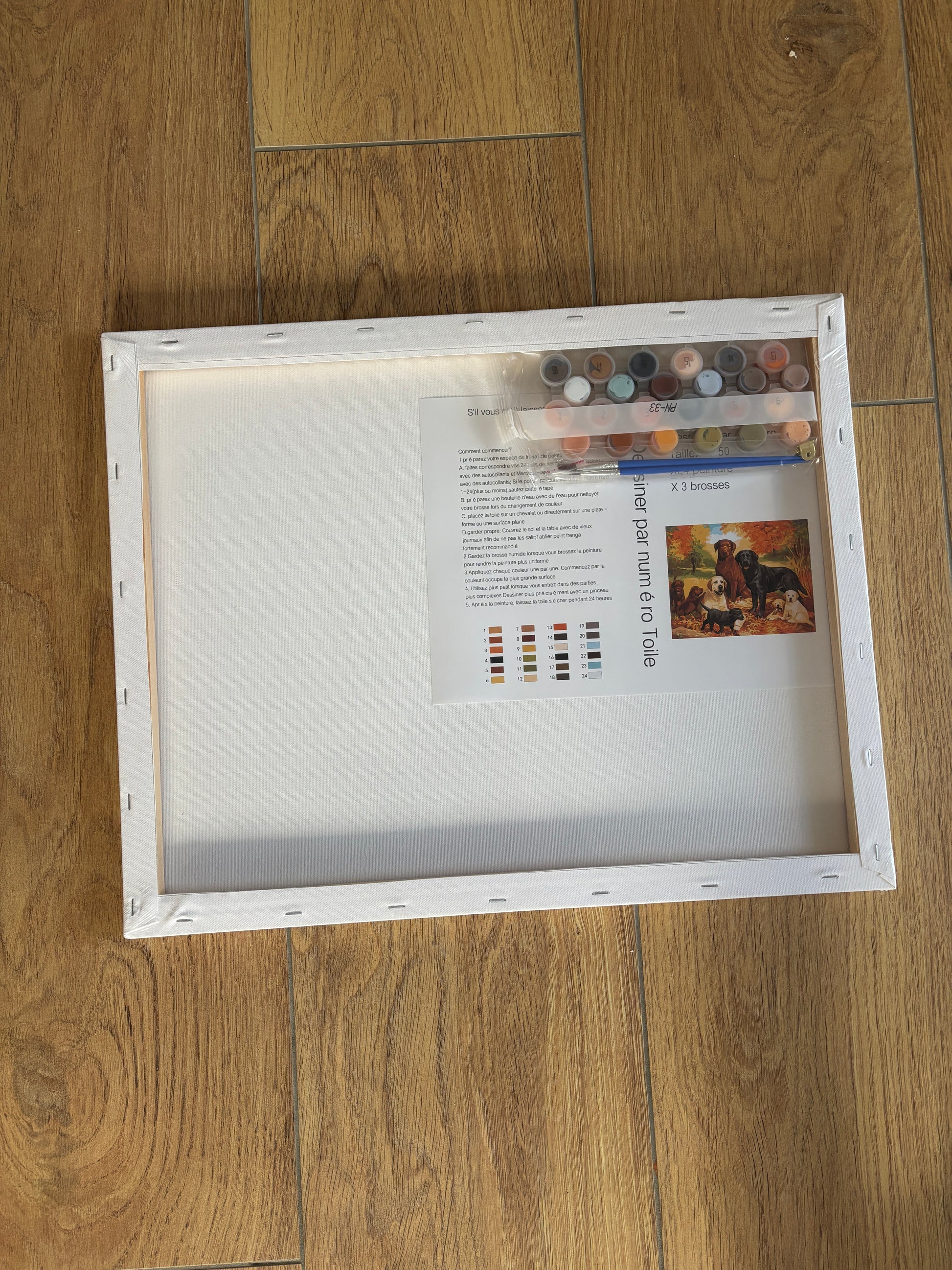 Malset nach Zahlen – Hunde im Herbstwald – Komplettset mit Leinwand, Farben & Pinseln